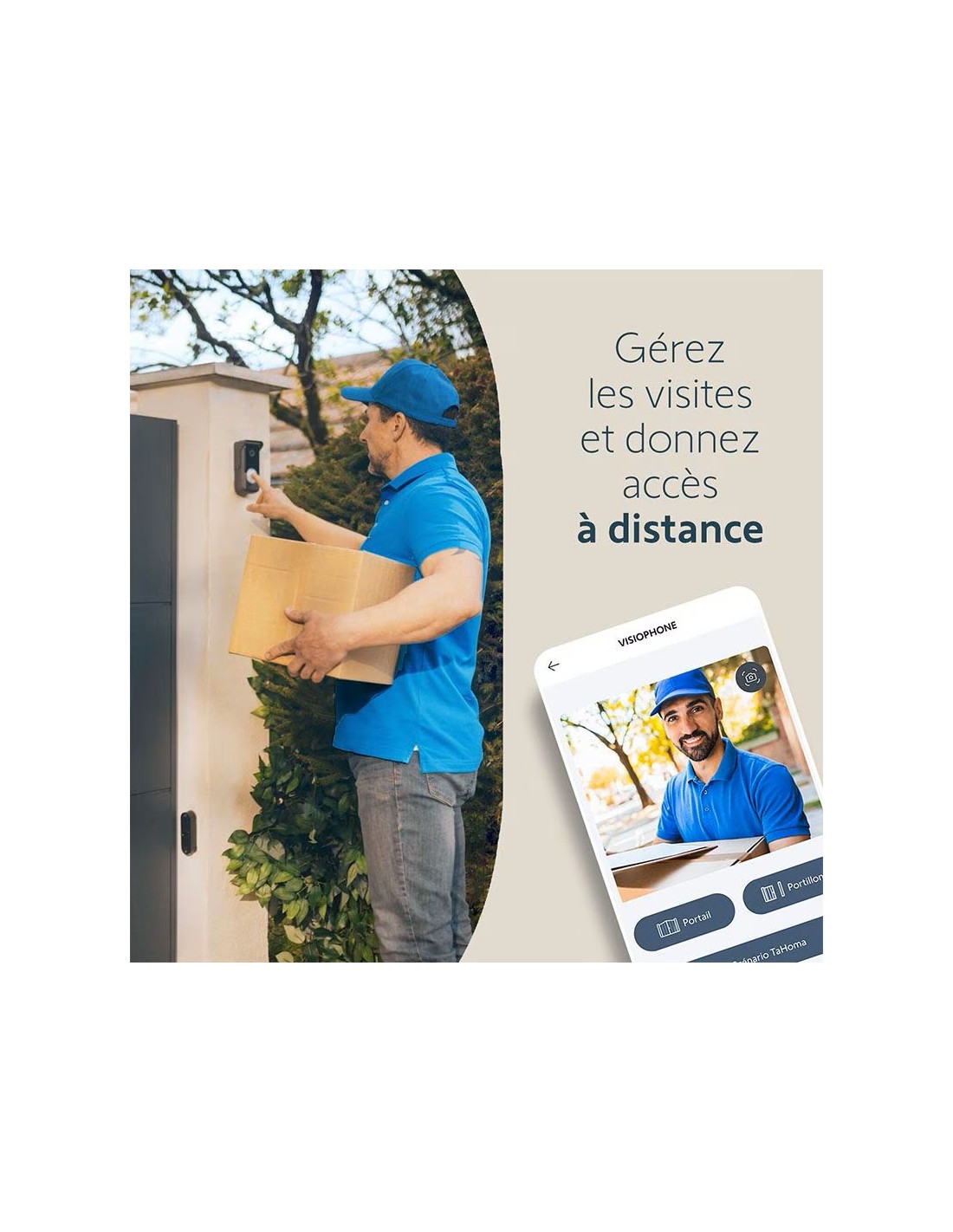 Recevez instantanément des notifications sur votre smartphone et votre moniteur intérieur dès qu’un visiteur se présente, de jour comme de nuit. Les alertes sont enrichies de photos pour une identification immédiate. Vous pouvez voir, entendre et dialoguer avec votre visiteur grâce à une communication fluide, comparable à un appel téléphonique (bien plus pratique que le mode talkie-walkie proposé par certains concurrents). Et bien sûr, vous pouvez ouvrir votre portail ou portillon à distance.